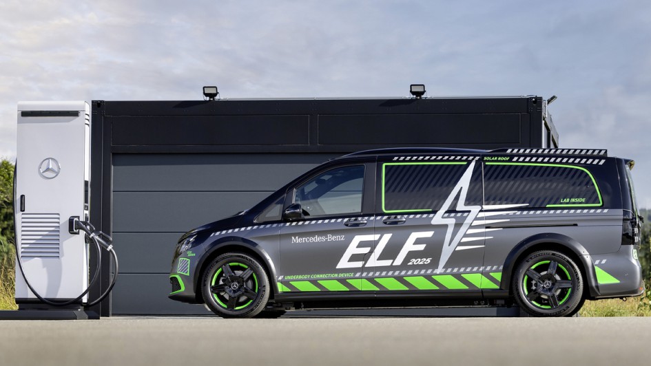 von 8: Mit dem Projektmobil ELF (Experimental-Lade-Fahrzeug) stellt Mercedes-Benz jetzt ein rollendes Ladelabor vor. im ELF sind per CCS-Stecker bis zu 900 kW Ladeleistung möglich.