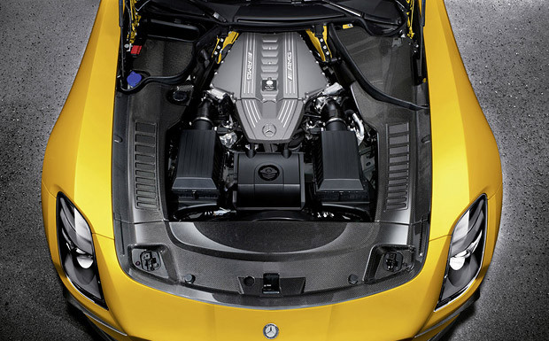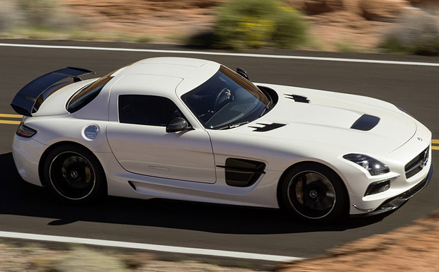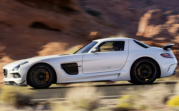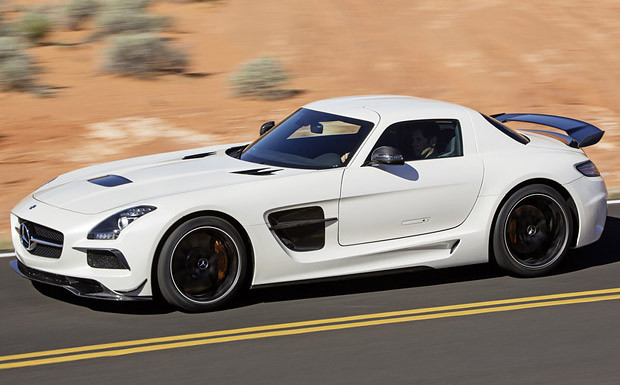 von 10: Mit einer Leistung von 464 kW / 631 PS ist der neue Mercedes SLS AMG Coupé Black Series ab Juni 2013 nicht nur 60 PS stärker als der normale SLS AMG, ...
