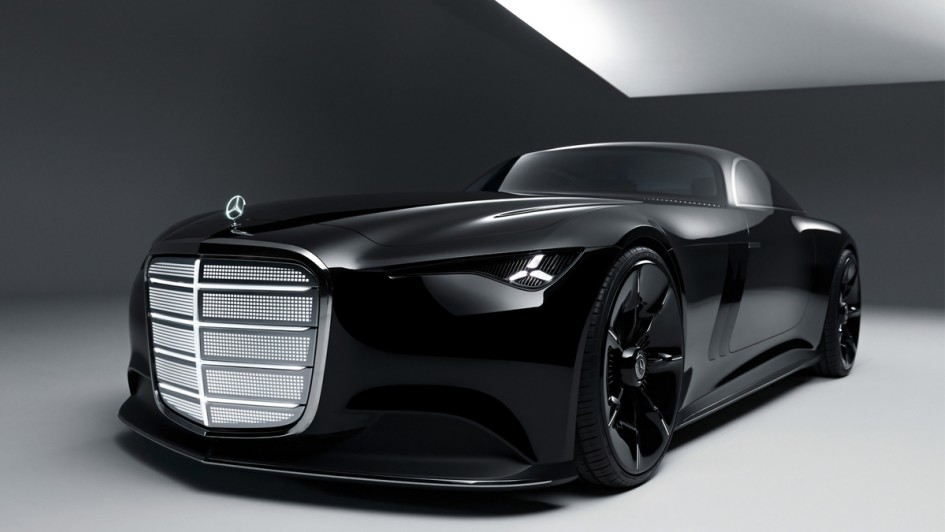 von 7: Auffällig sind die Proportionen: Der gestreckt wirkende Vorderwagen mit kurzem Überhang schmiegt sich flach über mächtige, schwarze Räder. Die weit nach hinten versetzte Fahrgastzelle läuft tropfenförmig bis über die Hinterachse hinaus und erinnert damit an den legendären Mercedes 540 K Autobahnkurier.