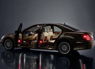 von 9: Im Innenraum setzen die Schwaben ebenfalls verstärkt auf Licht-Elemente. So steht für die S-Klasse eine Ambientebeleuchtung zur Verfügung. Diese taucht je nach Lust und Laune die Fahrgastzelle in bernstein, weiß oder eisblau.