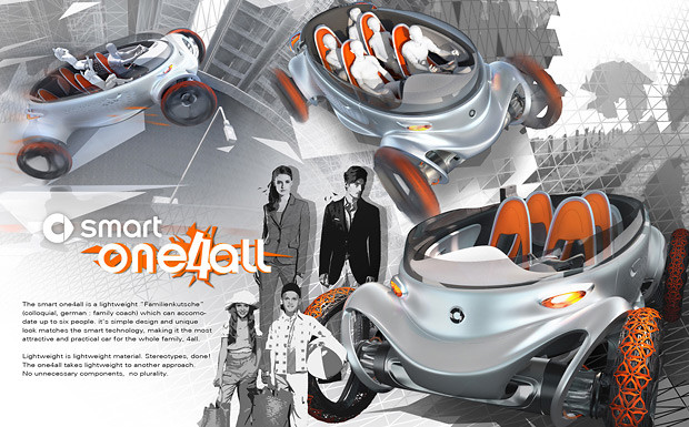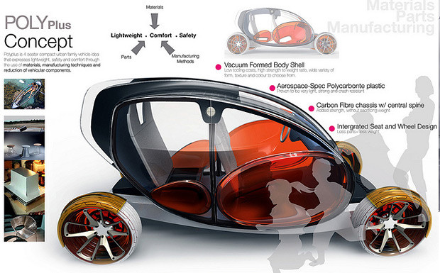 von 4: Die Sieger-Entwürfe der "Michelin Challenge Design 2013": Sechs Sitze und eine adaptive Radsturzfunktion kennzeichnen die Studie "eLink" mit Leichtbau-Karosserie.