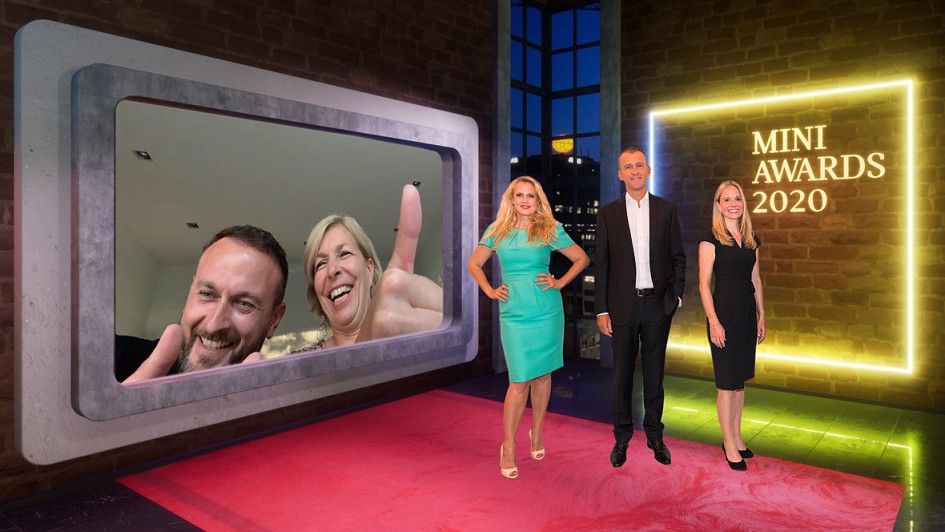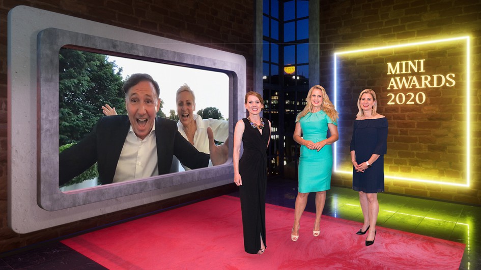 von 6: Den Hauptpreis "Bester Unternehmer 2020" hat sich die AHAG Gruppe gesichert. Barbara Schöneberger, Sebastian Mackensen, Leiter Markt Deutschland und Ulrike von Mirbach, Leiterin Mini Deutschland, gratulierten.