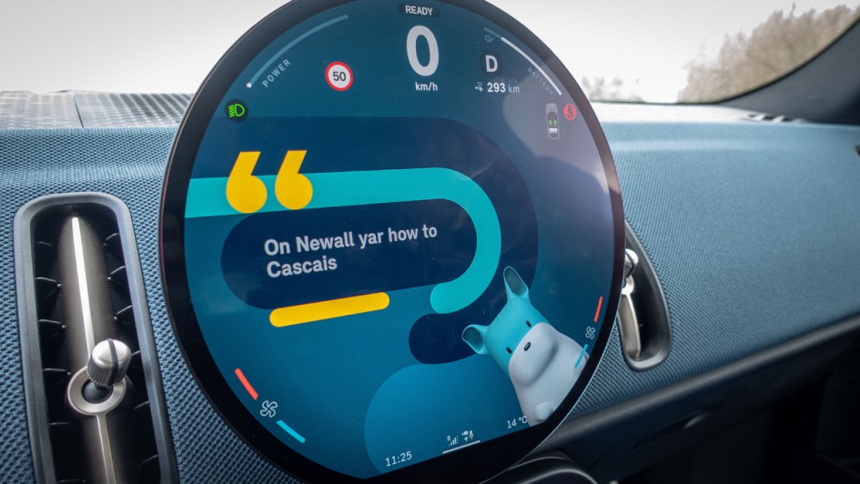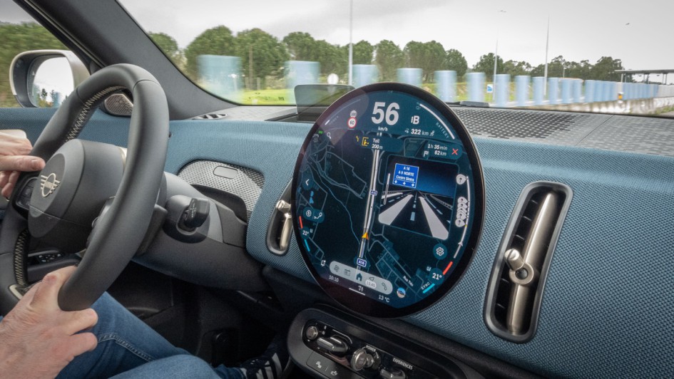 von 18: Das Head-up-Display passt nicht mehr ins Jahr 2024 und gar nicht in ein Automobil mit Premiumpreisen, wie dem Mini Countryman SE All4. Es ist im Paket S für 3.360 Euro (brutto) drin.