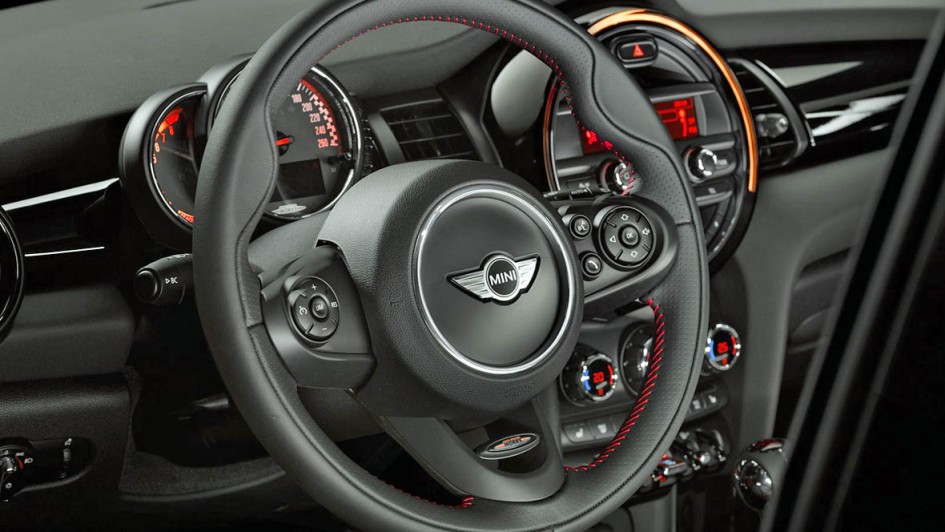 von 9: Zum Ausstattungsumfang des JCW gehören unter anderem eine neu entwickelte Brembo-Sportbremsanlage, 17-Zoll-Leichtmetallräder, LED-Scheinwerfer, Sportsitze und ein Lenkrad mit Multifunktionstasten.