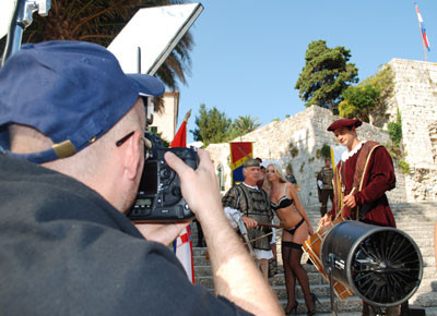 von 16: In der mittelalterlichen Altstadt der Stadt Rab auf der gleichnamigen Insel gingen die Fotoarbeiten zu Ende. Mandy Lange wurde dort mit den Raber Scharfschützen abgelichtet.
