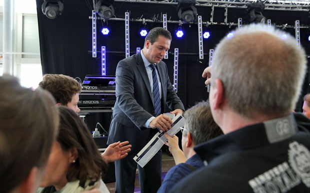 von 7: Matthias Moll bedankte sich in seiner Eröffnungsrede bei seinen Kunden, die den Neubau notwendig und gleichzeitig möglich gemacht hätten.