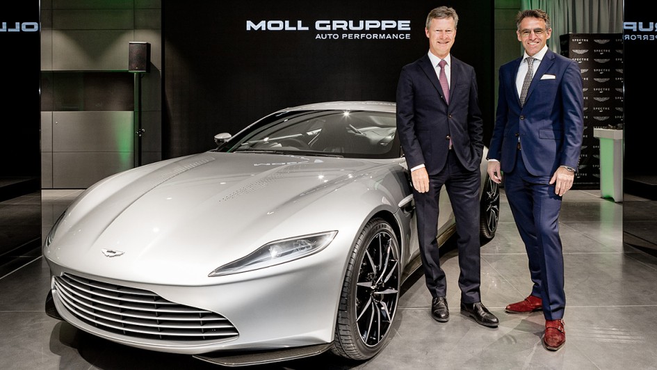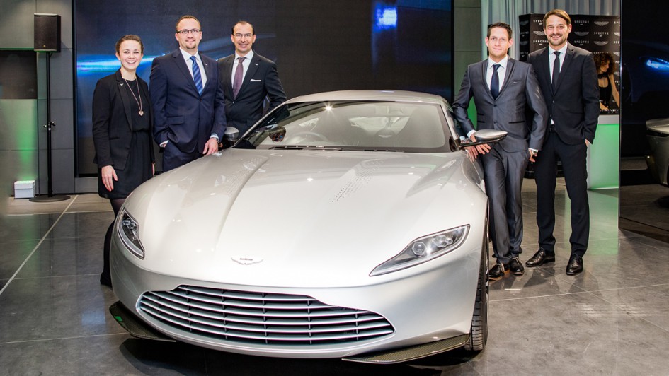 von 6: Von dem Coupé gibt es überhaupt nur zehn Exemplare und es wurde extra für den Film gebaut. Entsprechend begehrt war ein Foto. Hier das Team von Aston Martin Düsseldorf.