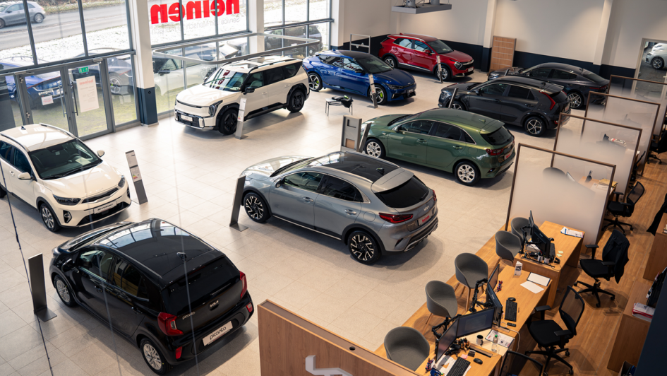von 9: Am Standort Menden hat die Heinen-Gruppe den Kia-Showroom (420 Quadratmeter) nach der neuen "Space Identity" des koreanischen Autobauers umgestaltet.
