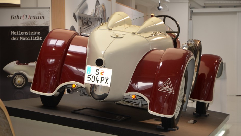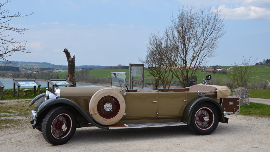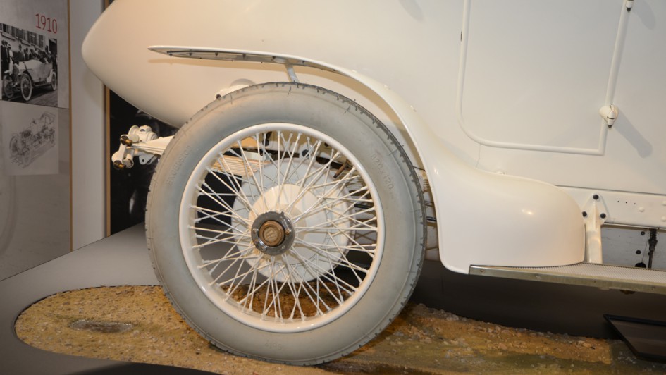 von 11: Austro-Daimler Prinz Heinrich, Baujahr 1910, mit korrekten, weil nicht schwarzen Reifen. Ruß als Füllstoff wurde den Gummimischungen erst später hinzugefügt.
