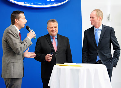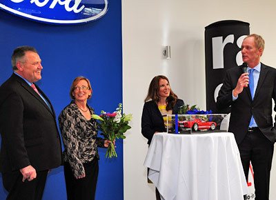 von 9: Ford Verkaufsdirektor Wolfgang Kopplin (r.) dankte der Autofamilie Pielmeier für ihr Engagement und beantwortete Moderator Bernhard Mahler alle Fragen zum Ford-Claim "Eine Idee weiter".