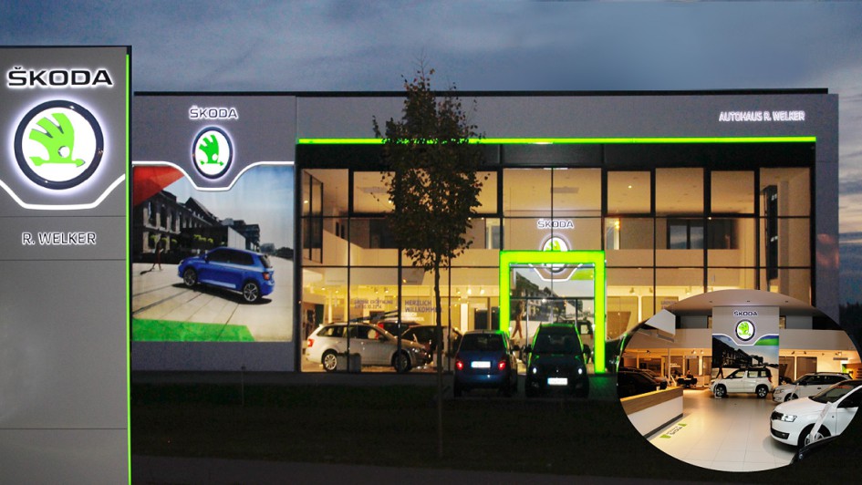 von 4: Das Autohaus R. Welter eröffnet in den nächsten Tagen in Weiterstadt einen neuen Skoda-Betrieb im aktuellen Corporate Design der tschechischen Marke.