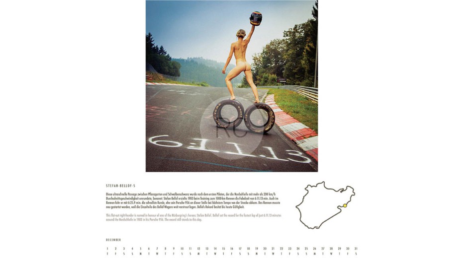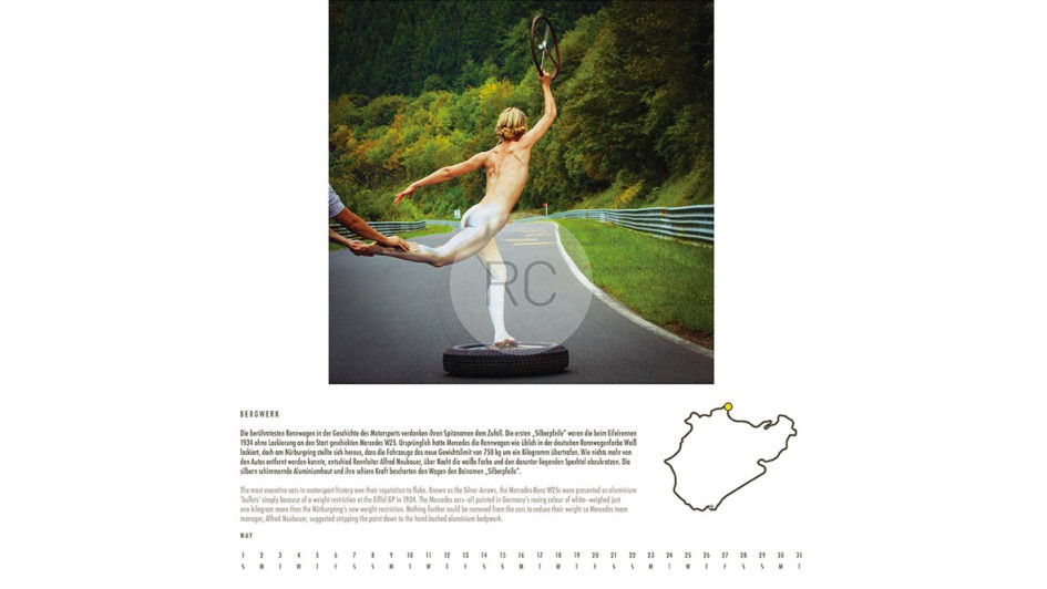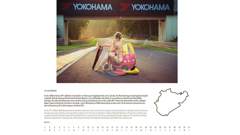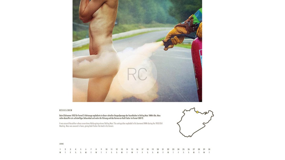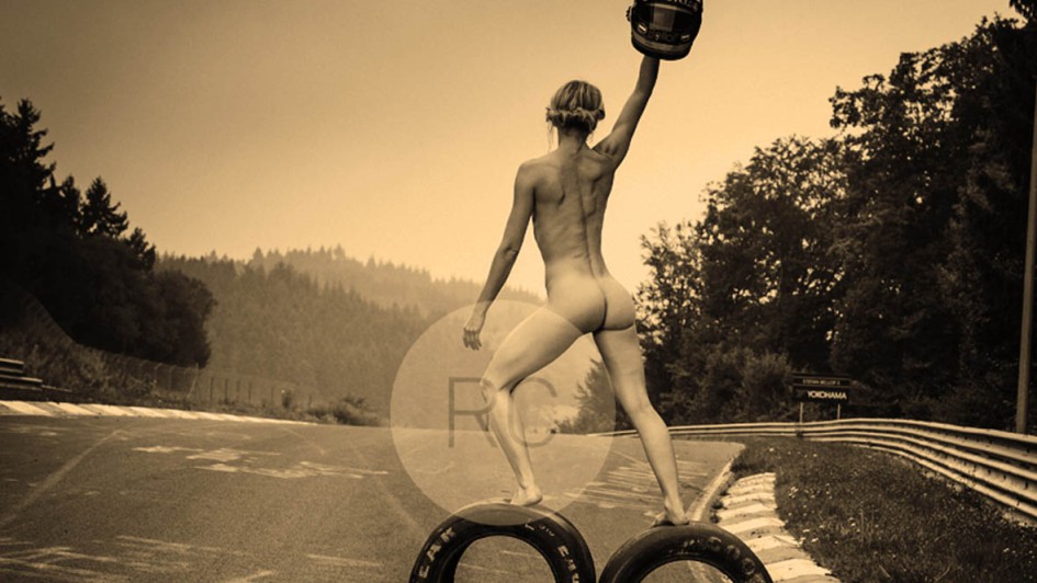 von 6: Zum ersten Mal wurde ein künstlerisch ambitionierter, erotischer Kalender an der Nordschleife fotografiert, der die faszinierende und bewegte Geschichte dieser Rennstrecke thematisiert.