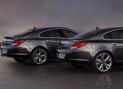 von 5: Doppelpremiere in London: Neben dem bereits vorgestellten Stufenheckmodell rollt Opel den neuen Insignia auch als fünftürige Fließheckversion (hinten) ins Rampenlicht.
