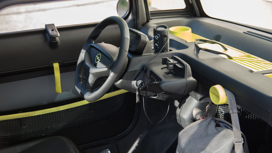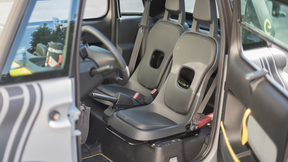 von 9: Komfort darf man im Opel Rocks-e nicht erwarten, er reicht aber für die zu erwartende Fahrstrecke, die Plastiksitze sind schweißtreibend, das wurde im Smart 1 deutlich cleverer gelöst.