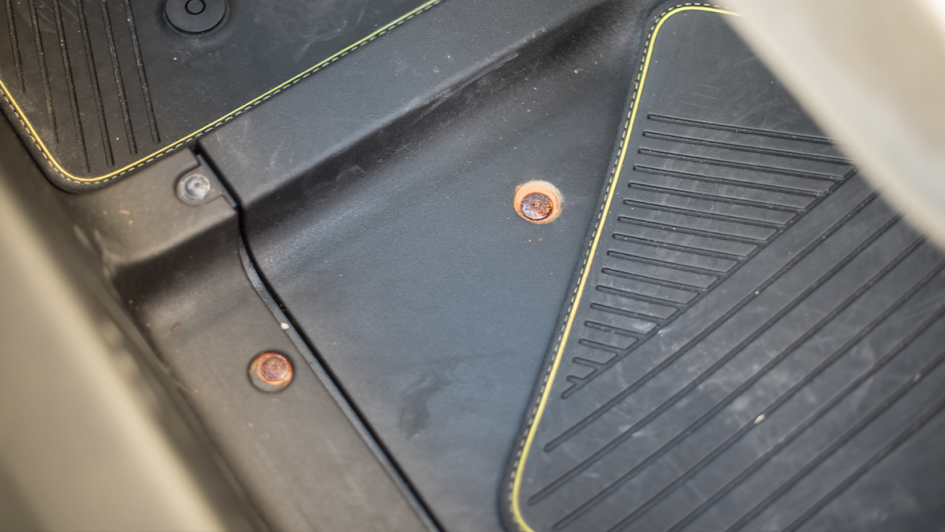 von 9: Autsch. Regen schwappt auf der Beifahrerseite vom Türrahmen runter, die Feuchtigkeit bekommt man nur schwierig aus dem Rocks-e raus. Handwäsche ist übrigens ein Muss – schwierig im Fuhrpark.