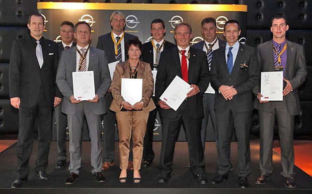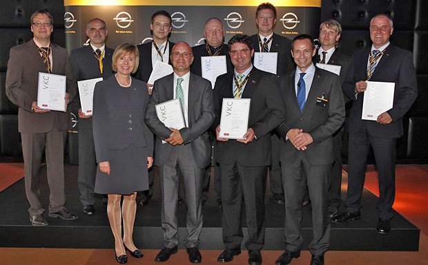 von 5: Die VKC-Mitglieder 2012 bekamen ihre Urkunden von Jürgen Keller, Direktor Verkauf und Marketing Opel Deutschland, überreicht. Im Bild: die Sieger der Vertriebsregion Nord.