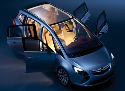 von 6: Opels in Genf vorgestellte Konzeptstudie "Zafira Tourer Concept" könnte die Richtung vorgeben, in die die nächste Generation des Rüsselsheimer Siebensitzers geht.
