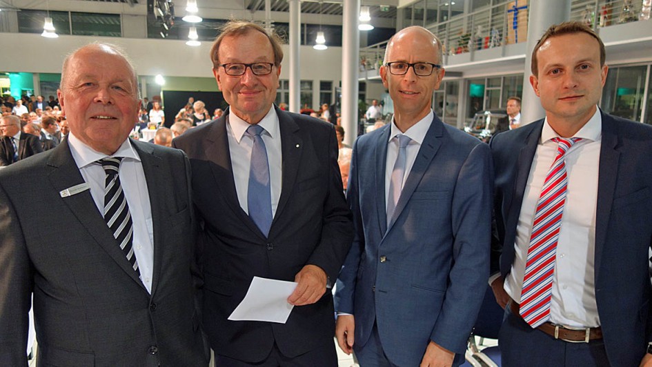 von 35: Unter den VIP-Gästen Hartmut Abel, Vorstand TÜV Nord (l.), DAT-Geschäftsführer Jens Nietzschmann, Siegbert Zeh, Geschäftsführer Screen, und LV-Präsident Thomas Peckruhn. Nicht im Bild AUTOHAUS-Chefredakteur Ralph Meunzel.