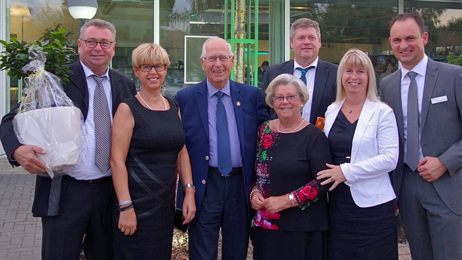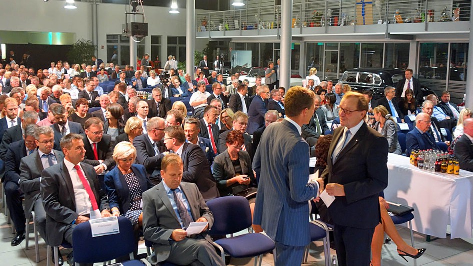 von 35: Die große Stunde für Firmenchef Helmut Peter. Er konnte dazu Gäste aus ganz Deutschland begrüßen. MB-Kollegen, Kollegen aus den Landesverbänden Sachsen-Anhalt und Thüringen, zahlreiche Bankvertreter, den Vorstand von TÜV Nord Hartmut Abeln, den VL von TOTAL Deutschland Thomas Kaiser, Notare, Anwälte, Abgeordnete u.a.