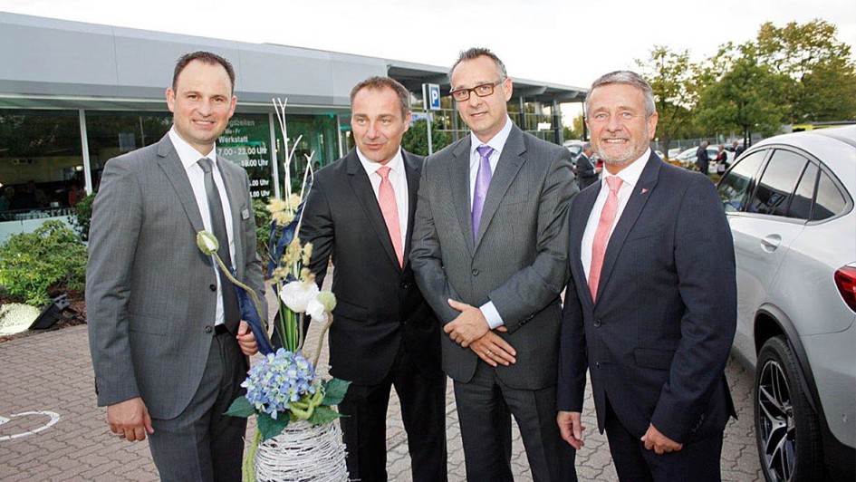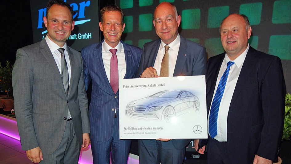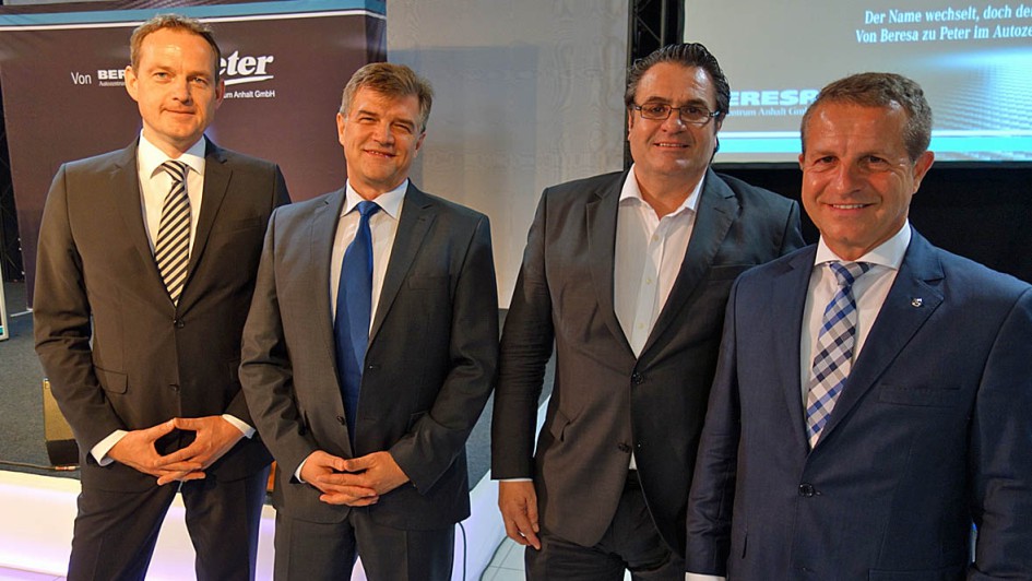 von 35: Die bisherigen Macher von Beresa, Thomas Hoffacker, MB-GF Beresa Dessau (l.), Winfried Hötte, GF Beresa, Marcus Herkenhof, GF Bersa, und Darius Schwierz, GF Leasing Beresa