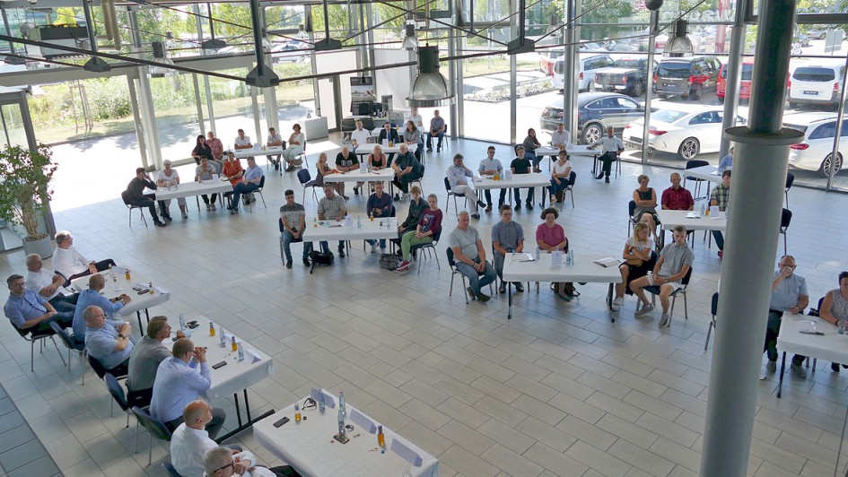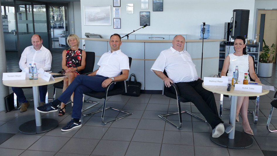 von 10: Begrüßung in Nordhausen: Die neuen Peter-Azubis, den Geschäftsführern Helmut und Andreas Peter sowie den Leitern Christina Dost, Simone Rott und Achit Tölle.