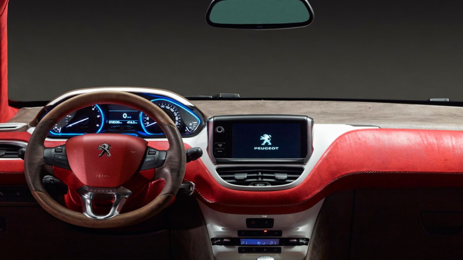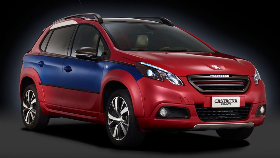 von 5: Um zu zeigen, wieviel Luxus in einen Kleinwagen passt, hat sich der Mailänder Karosseriespezialist Castagna des Peugeot 2008 angenommen. Die rote Blechhülle des SUV hat der Designer in blau und weiß akzentuiert.