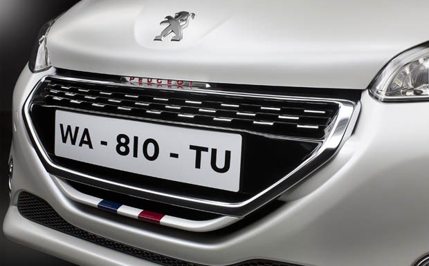von 8: Kennzeichen des Sondermodells Peugeot 208 GTi "Limited Edition" sind die Lackierung in Perlmutt-Weiß-Satin und ein weiß lackierter Kühlergrill inklusive französischer Nationalflagge.