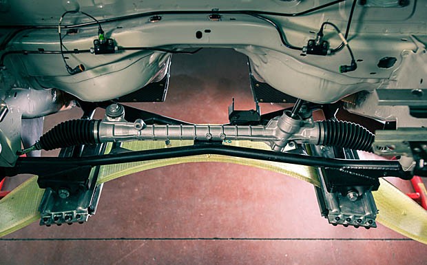 von 5: Sowohl an der Vorder- wie auch an der Hinterachse kommt an der Mc-Pherson-Aufhängung ein quer eingebautes Aufhängungsblatt aus Harz-Glasfaserverbund zum Einsatz