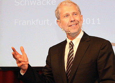 von 21: Wie es um das Wachstum in unsicheren Zeiten steht, darüber referierte Norbert Irsfeld von Prudentes Management. Seinen Aussagen zufolge steht das Jahr 2012 vor allem im Zeichen von operativer Exzellenz auf der Management-Seite. Denn es gelte, das Wachstum zu managen und Mitarbeiter zu loyalisieren. "Fordern und fördern" ist seine Devise. Zum Abschluss des Tages ...