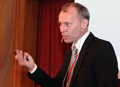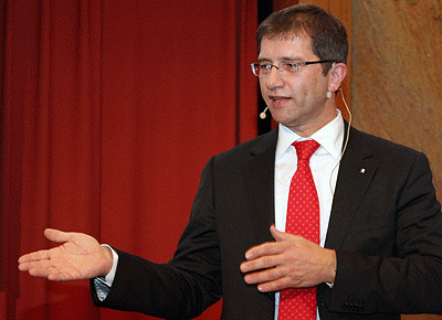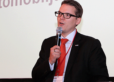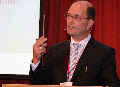 von 21: Thomas Schalberger, Direktor Marketing und Kommunikation bei Peugeot Deutschland, leitete das letzte Quartal des Kongresstages ein und zeigte in seiner Präsentation die Maßnahmen von PSA Peugeot Citroen im Bereich Handelmarketing auf. Ein wichtiges Thema für 2012 wird hierbei das intelligente Vernetzen von Kunden und Händlern über neue Werbeformen im Internet sein. Verbunden mit dem neuen "webStore"-Konzept haben Händler die Möglichkeit, mit der Unterstützung des Herstellers ihre Neuwagenbestände zu bewerben.