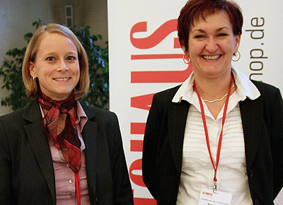 von 21: ... in der Pause auszutauschen. Für einen reibungslosen Ablauf des Kongresses und als Garanten, dass die Referenten ihre vorgegebene Redezeit einhielten, dafür sorgten die beiden AUTOHAUS Akademie-Mitarbeiterinnen Petra Steinkohl (l.) und Manuela Vogl. Für Fragen zu Garantie und Kundenbindung standen während der Pause auch ...