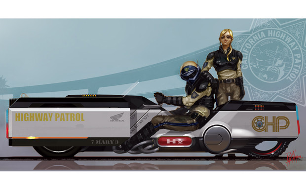 Das von Honda North America vorgestellte CHP-Drohnen-Squad treibt die Drohnen-Idee auf die Spitze: Eine Autodrohne kann während der Fahrt Motorrad-Drohnen losschicken. Auch hier ist der Grundgedanke ein in Zukunft überfülltes Straßensystem mit vielen Staus. Hinzu kommen die begrenzten Mittel und die sinkende Zahl der Mitarbeiter der CHP.