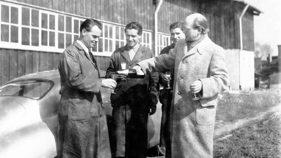 von 20: Werksabholung bei Porsche: Übergabe eines der ersten Porsche 356 an Dr. Ottomar Domnick am 26. Mai 1950. Damit legte er den Grundstein für die Tradition, Kundenautos am Werk in Zuffenhausen persönlich abzuholen.