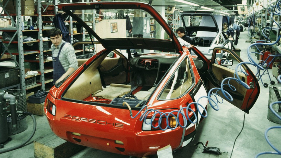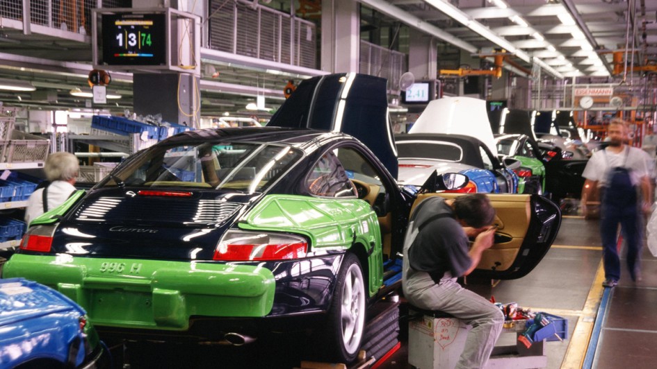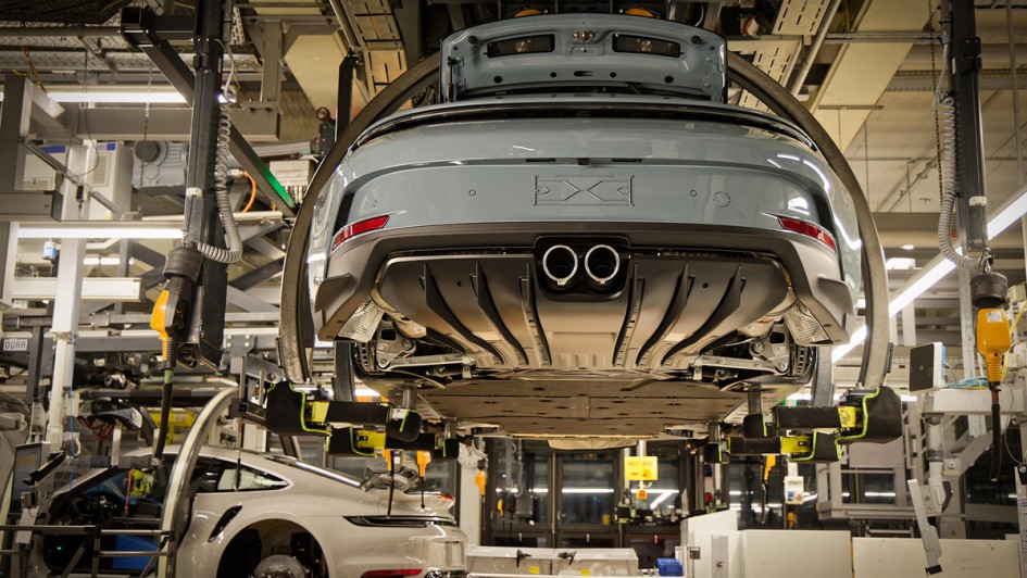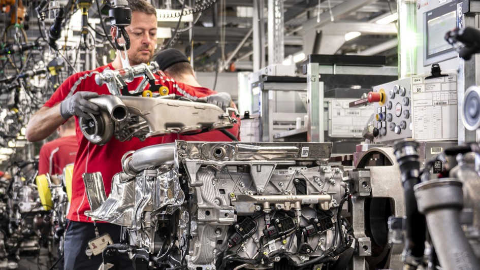 von 20: Bei Porsche in Zuffenhausen werden in zwei Motorenwerken die Boxermotoren für die Sportwagen sowie die V8 für die viertürigen Verbrennermodelle und die E-Maschinen für den Taycan und Macan Electric gefertigt.