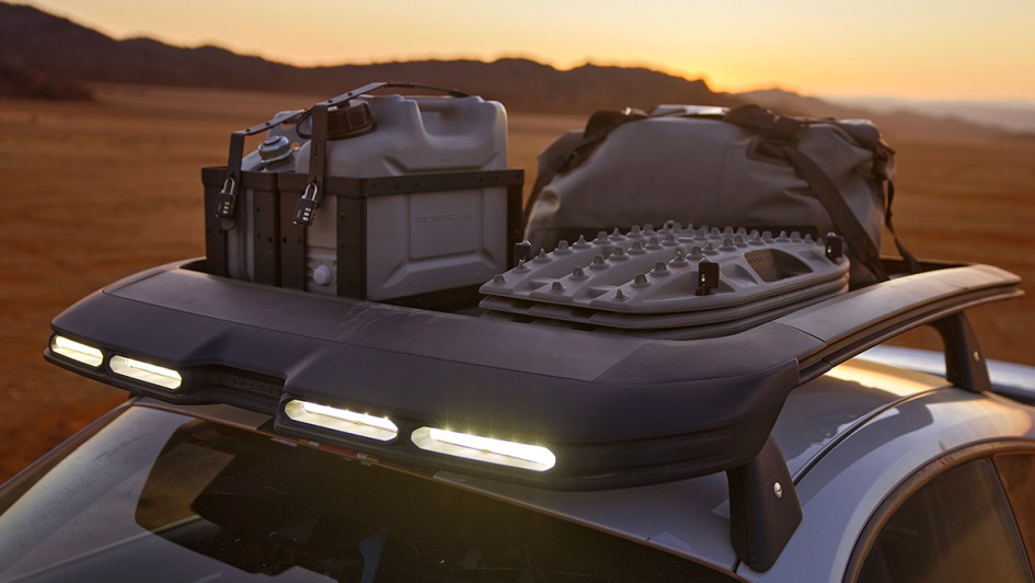 von 10: Als i-Tüpfelchen ist zudem ein eigens entwickelter Dachkorb mit integrierten Zusatzscheinwerfern bestellbar, auf dem sich wie beim historischen Rallye-Vorbild Reservekanister und Klappspaten schnallen lassen.