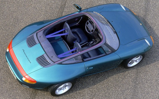 von 6: Das Porsche-Museum schickte besondere Stücke nach North Carolina, zum Beispiel das Panamericana Concept Car von 1989, dessen unkonventioneller Überrollbügel sich wie bei einem Motorboot um das komplette Cockpit zog