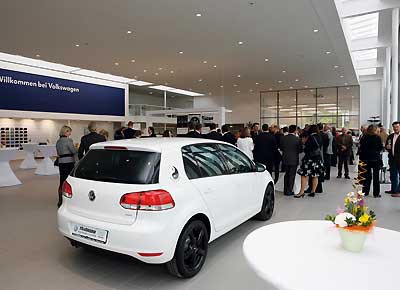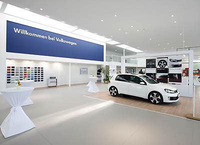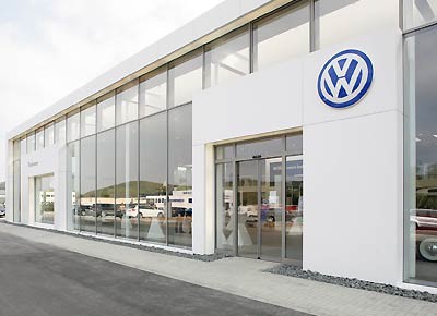 von 5: Elemente, die nicht architektonischer Bestandteil des Gebäudes sind, wie das Eingangsportal oder der Händler- und Gebäuderahmen, machen daraus eine Volkswagen spezifische Architektur.