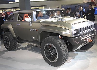von 10: Für reinen Open-Air-Genuss soll die Studie Hummer HX stehen. Den Vortrieb übernimmt ein 3,6-Liter-V6-Motor, der auch mit Bioethanol betankt werden kann.