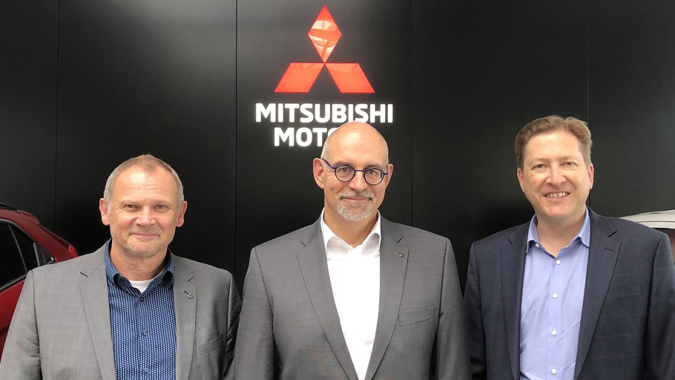 von 6: Jens Schulz, Verkaufsleiter Mitsubishi Deutschland (r.), Frank Eberhart, Geschäftsführer von Ramsperger Automobile und Rüdiger Warthmann, Top-Regionalleiter Mitsubishi