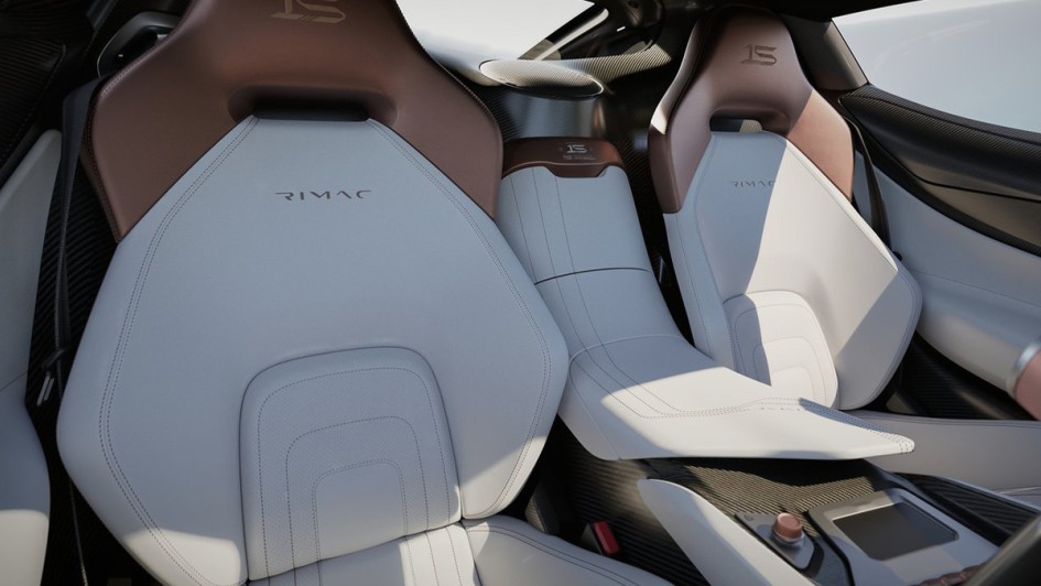 von 10: Demnach dürfte der 15th Anniversary über den 1.408 kW/1.914 PS und 2.360 Newtonmeter starken Elektroantrieb des Serien-Nevera verfügen, der 2023 zahlreiche Geschwindigkeitsrekorde aufstellte.