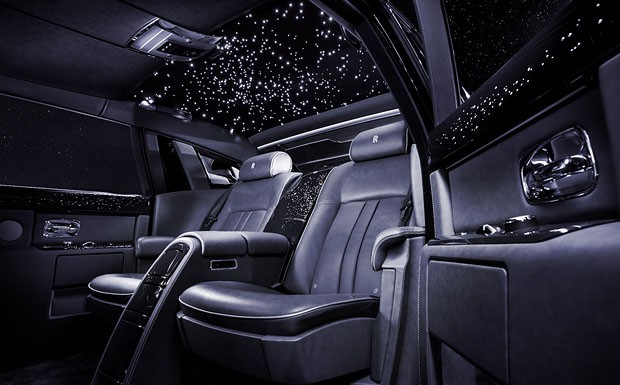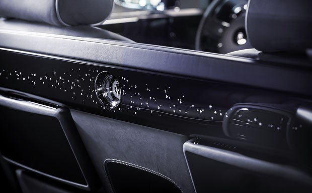 von 4: Rolls-Royce Bespoke Celestial Phantom: Der eigens kreierte, dunkelblaue Lack mit feinen Glaspartikeln verleiht der der mehr als sechs Meter langen Limousine auch von außen besonderen Glanz