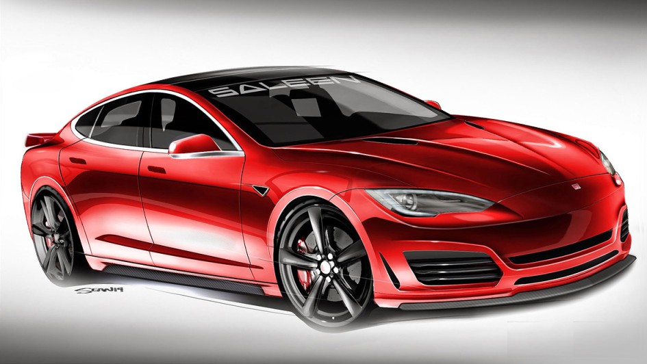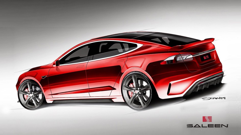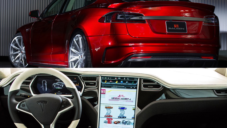 von 4: Äußerlich fällt zunächst der Verzicht auf den für Tesla typischen Kühlergrill auf: Der Saleen setzt auf eine nahezu geschlossene Front, wodurch die große Limousine optisch noch weiter in Richtung Sportwagen rückt.
