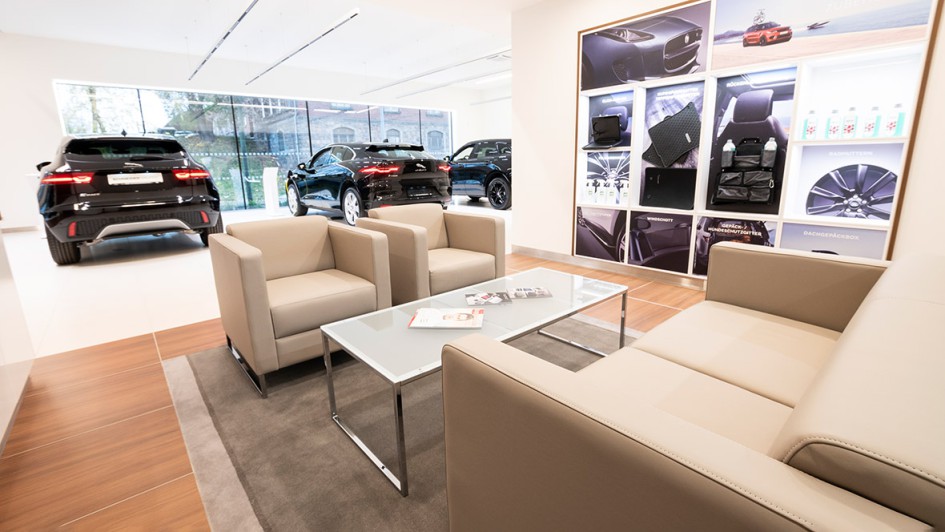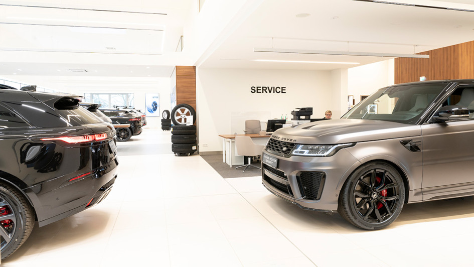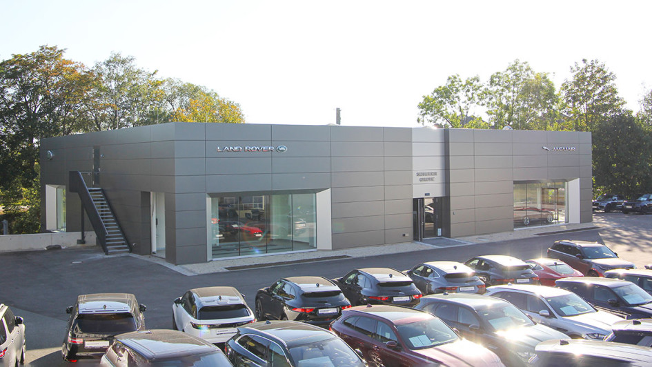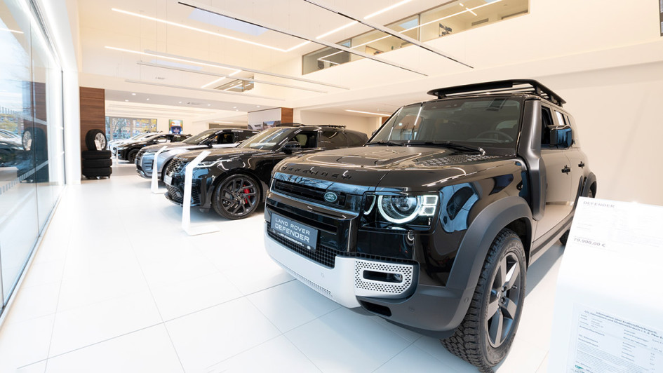 von 9: Die Eröffnung des neuen Betriebs fand aufgrund Corona nur im kleinen Rahmen statt. Mit dabei waren: Rainer Ohlenhard (Direktor Händlernetzentwicklung bei Jaguar Land Rover Deutschland), Marko Schneider (geschäftsführender Gesellschafter der Schneider Gruppe) und Jan-Kas van der Stelt (Geschäftsführer Jaguar Land Rover Deutschland) (v.li.).