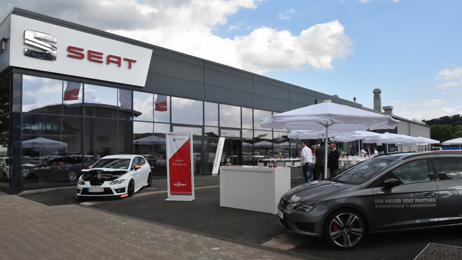 von 4: Bei der Eröffnung (v.l.): Ernst Christian Scherer, Geschäftsführender Gesellschafter Scherer-Gruppe, Autohaus-Geschäftsführer Peter Lemke und Bernhard Bauer, Chef von Seat Deutschland.