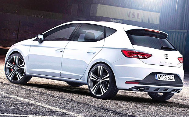 von 8: Optisch unterscheiden den Seat Leon Cupra unter anderem eine Heckschürze mit angedeutetem Diffusor und zwei ovalen Endrohren sowie spezielle Leichtmetallräder in 18-Zoll oder 19 Zoll von den schwächeren Varianten.
