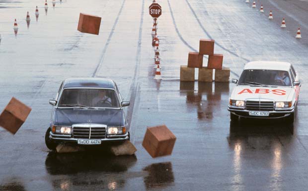 von 10: Seine Rolle als Trendsetter der aktiven und passiven Sicherheit unterstrich die fünfte Generation der S-Klasse mit der Einführung des geregelten ABS ab 1977.