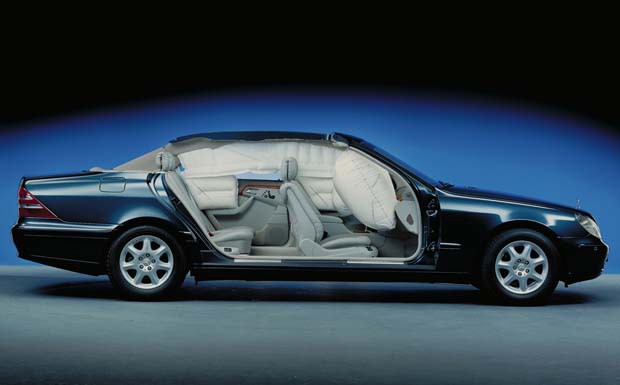 von 10: Die ab 1998 gebaute achte Generation der S-Klasse bot wieder herausragende Sicherheitsmerkmale, unter anderem mit acht Airbags.