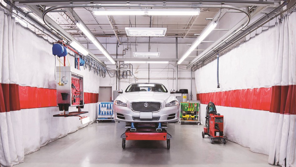 von 6: Auf Basis des Cameleon Economy Karosseriearbeitsplatzes bietet Sehon mit der E-Station Einzel-, Doppel- und Mehrfach-Plätze für die Reparatur von Elektrofahrzeugen an.
