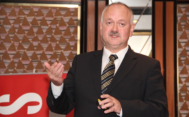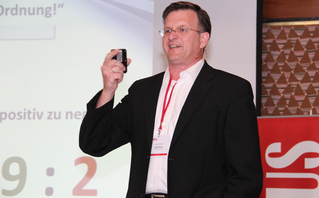 von 15: Harald Pfau, Vorstand Werbas AG, erklärte die Herausforderungen eines IT-Dienstleisters bei der Konzeption und Realisierung von EDV-Produkten für den Servicebereich.