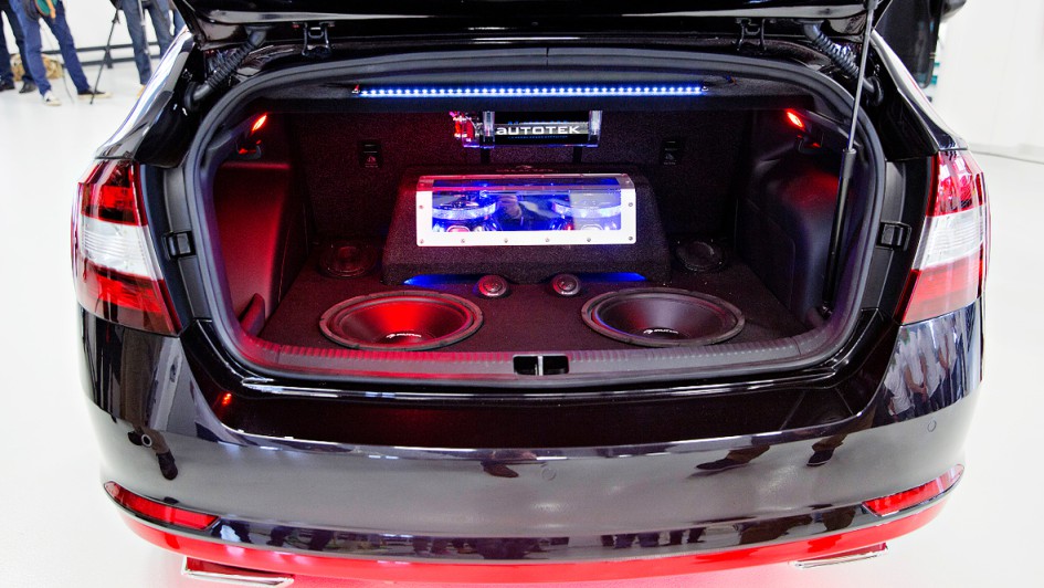 von 8: Für den guten Ton: Im Kofferraum haben die Azubis den Subwoofer des Audiosystems mit 1.800 Watt Leistung und 14 Lautsprechern untergebracht.